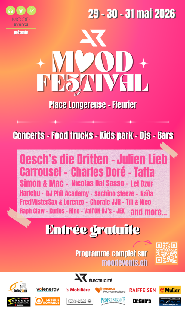 L’AR Mood Festival revient pour sa 5e édition les 29, 30 et 31 mai 2026 à Fleurier, sur la place Longereuse.